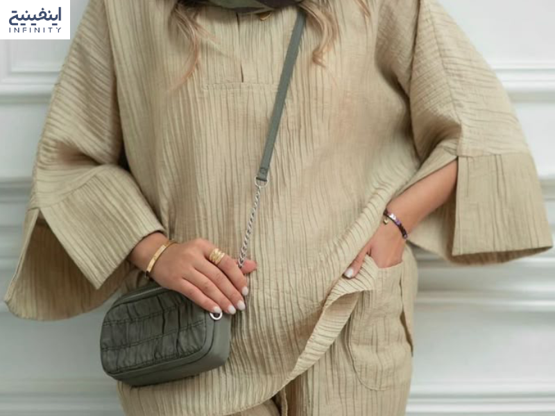 اکسسوری پیشنهادی ساعت مینیمال، کیف پارچهای، شال سبک یا تل پارچهای است.