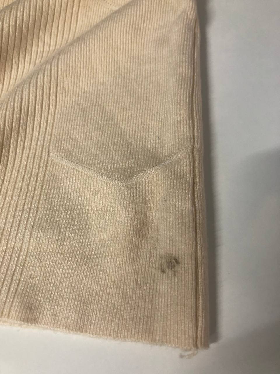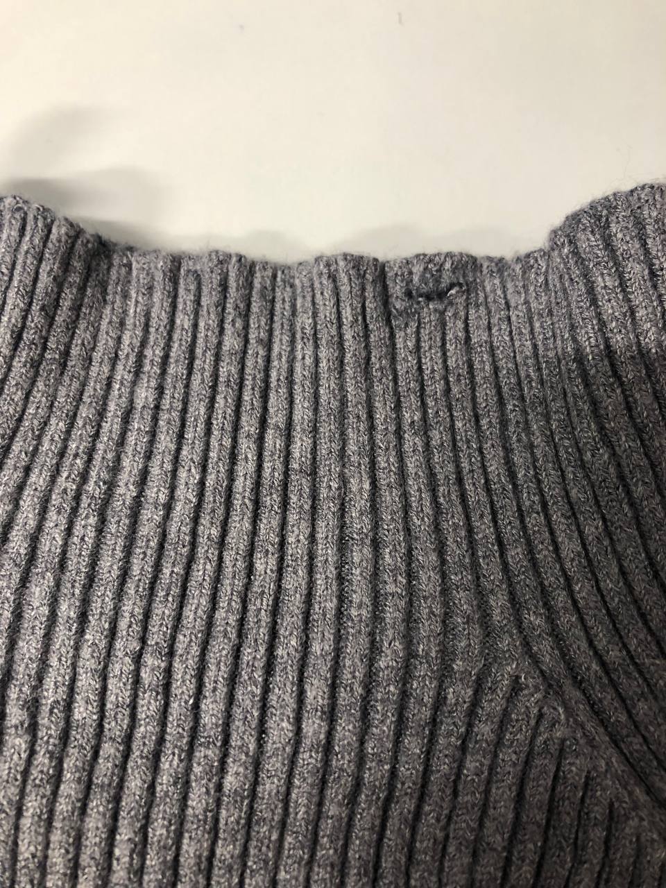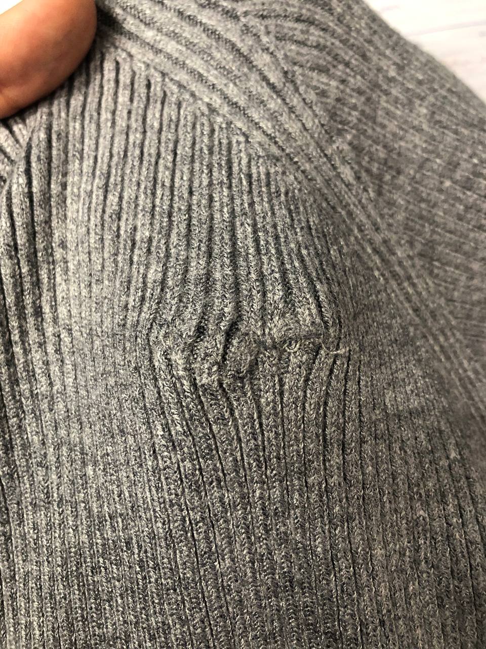 ایراد محصول طوسی: دارای سوراخ قسمت یقه- رفو شدگی جلوی لباس