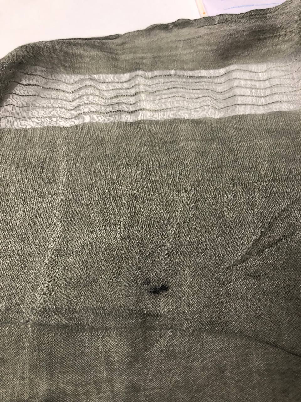 ایراد محصول کد 11: دارای لک- زدگی- نخ کش- تارو پود شال در قسمتهایی از هم باز شده