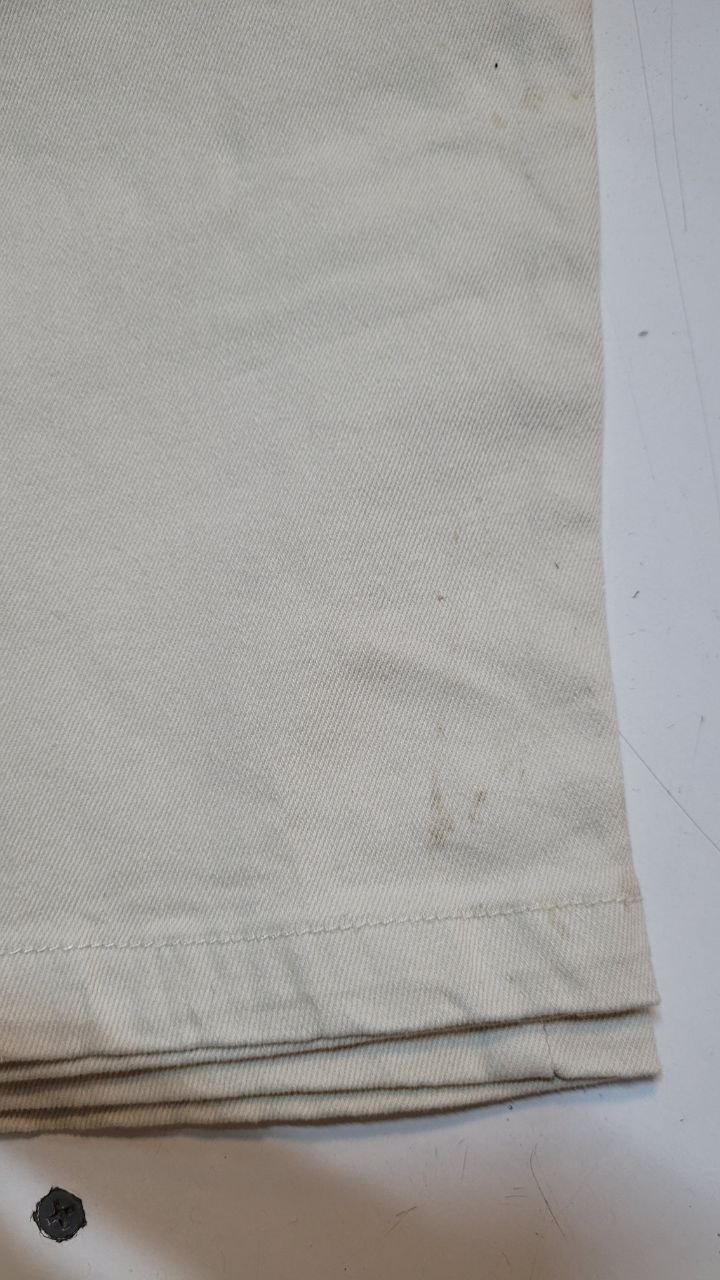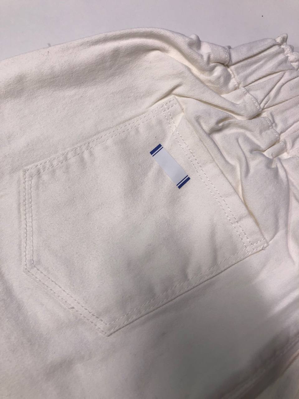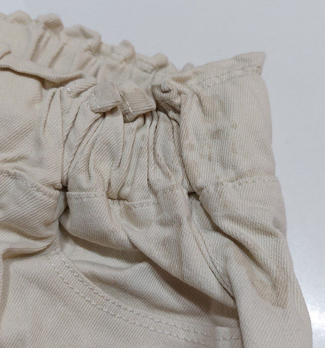 ایراد محصول سفید M: نخ کش پایین شلوار- لک زرد پایین شلوار- لک صورتی روی جیب- نخ سیاه در قسمتی از بافت شلوار