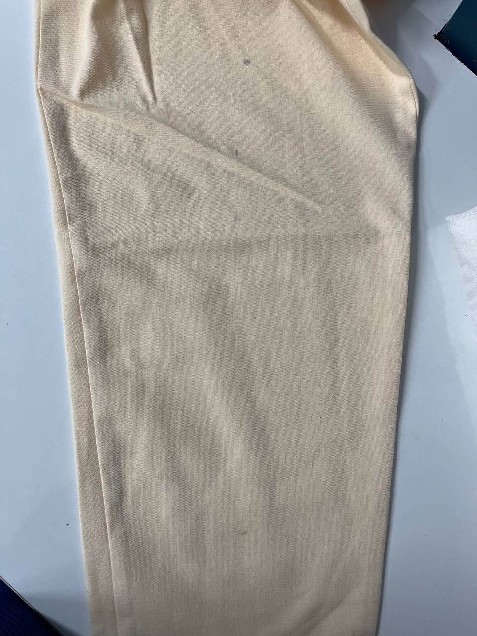 ایراد محصول کرم تیره M: دارای لک پشت شلوار- خط سفید جلوی شلوار- سوراخ کوچک جلوی شلوار