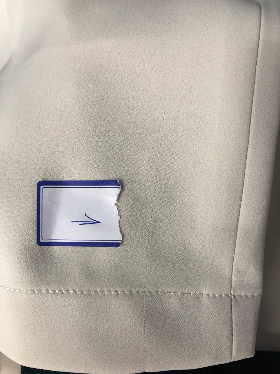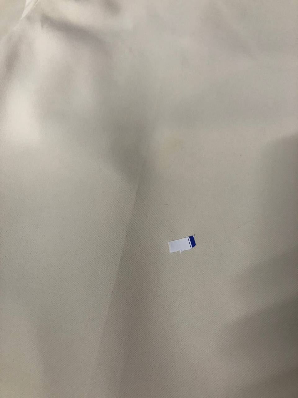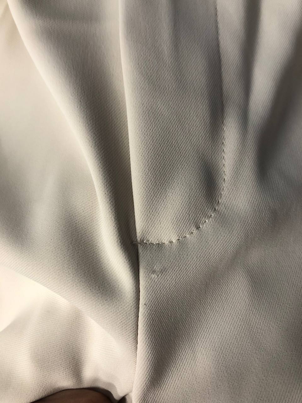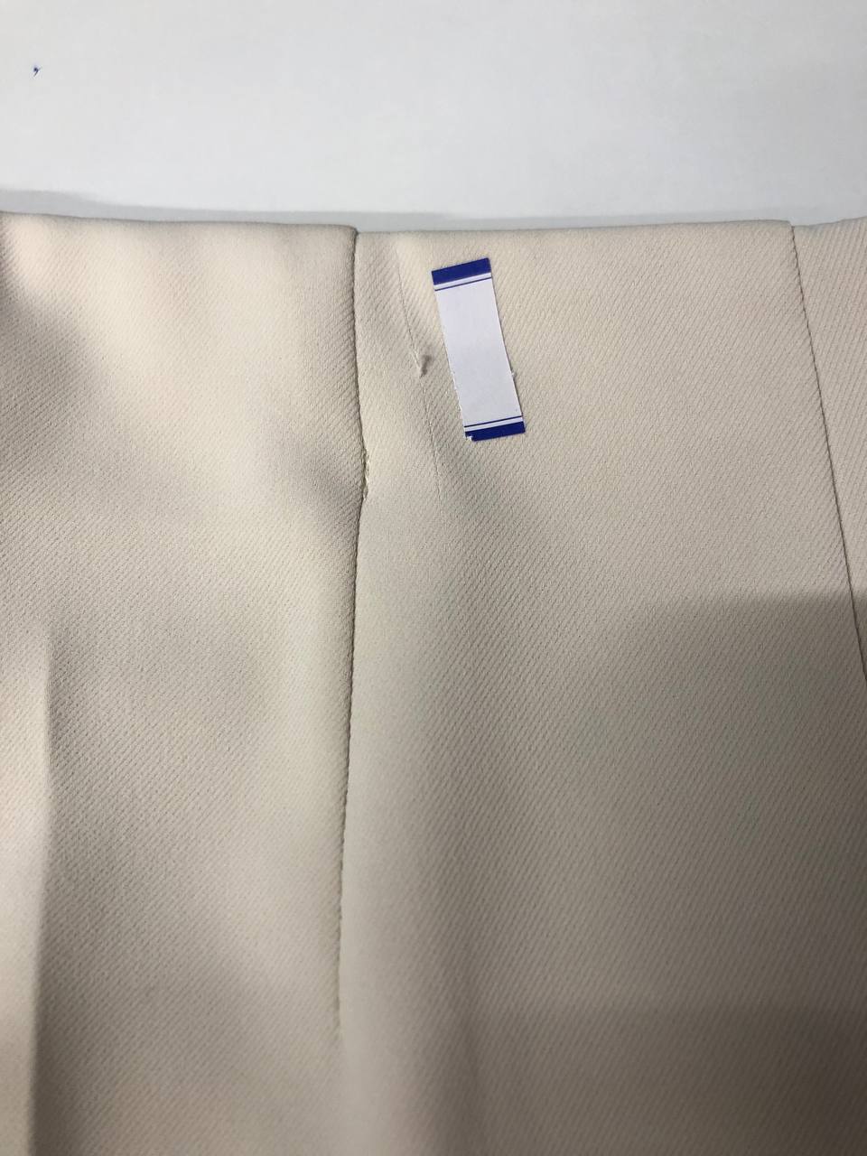 ایراد محصول استخوانی 38: نخ کش پشت شلوار- لک های کم رنگ پراکنده قسمت های مختلف- زدگی قسمت پایین زیپ- نخ کش قسمت کمر