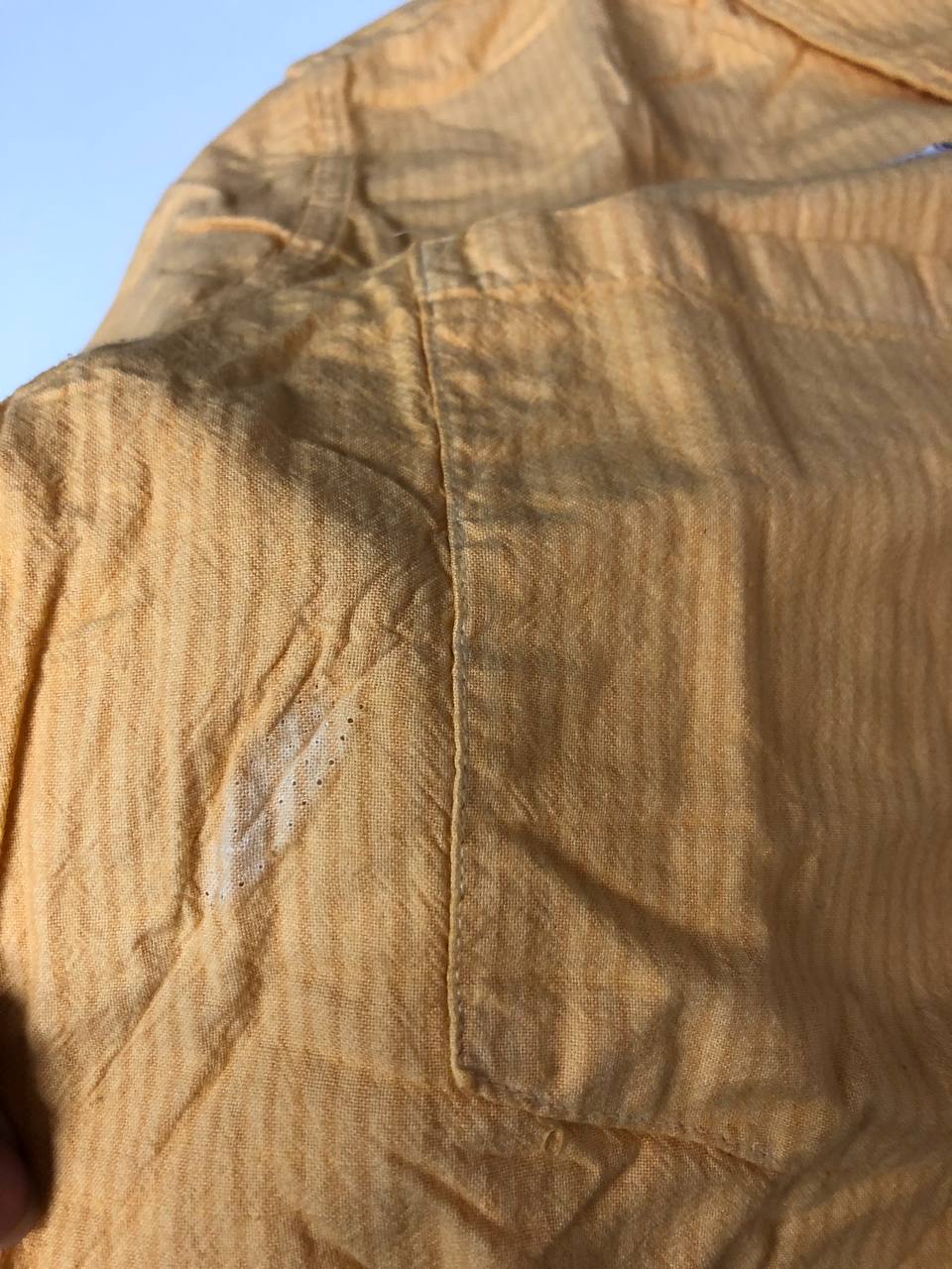 ایراد محصول نارنجی روشن 2XL: رد دوخت و سایه سفید کنار جیب- پرزشدگی آستین