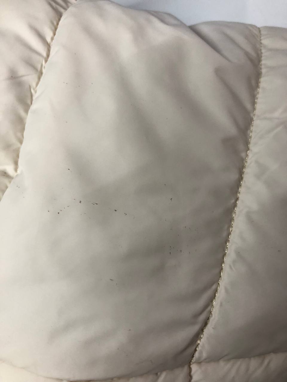 ایراد محصول کرم روشن: به صورت رندوم دارای لک های پراکنده در قسمت های مختلف- زدگی- رنگ پریدگی و خش دکمه ها- رد دوخت در قسمت های مختلف-