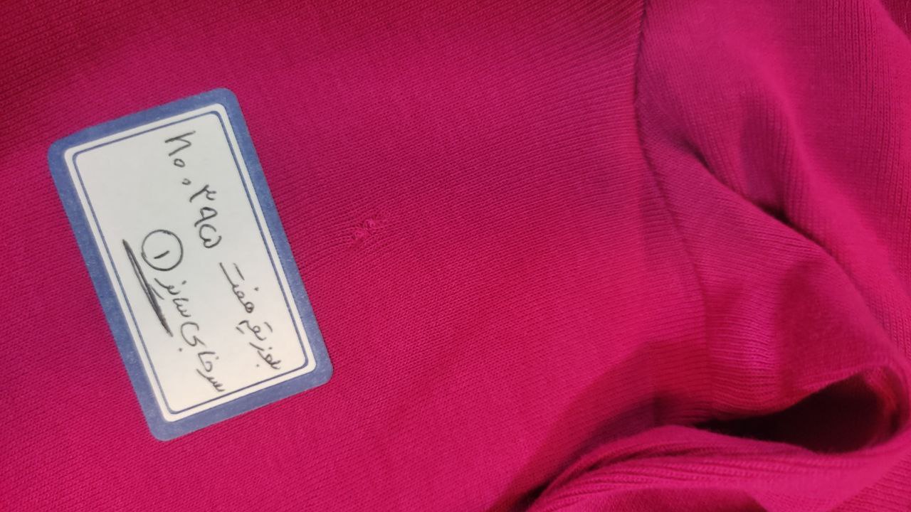 ایراد محصول سرخابی 1: زدگی در قسمت زیربغل، یقه، پشت و جلوی لباس