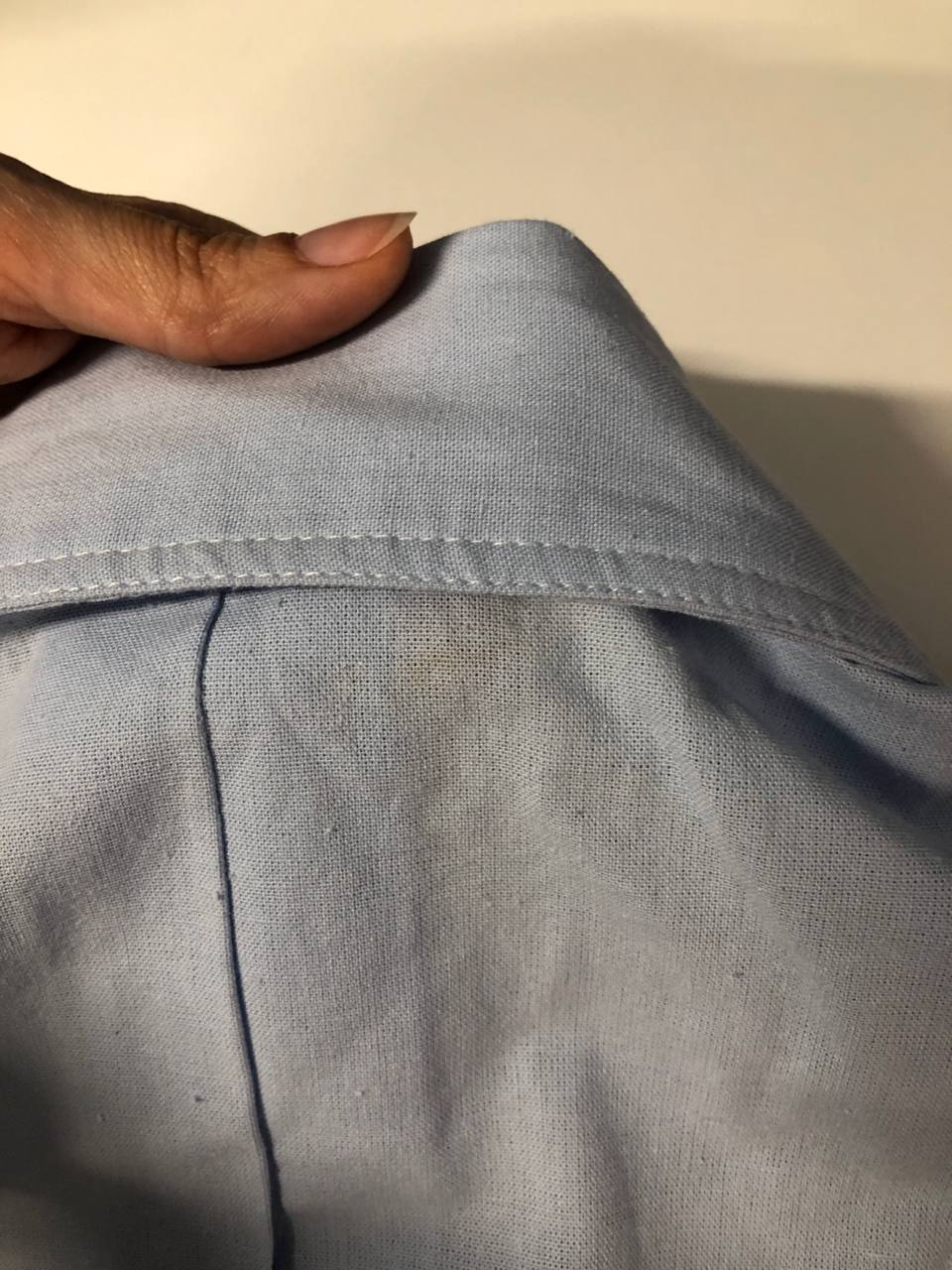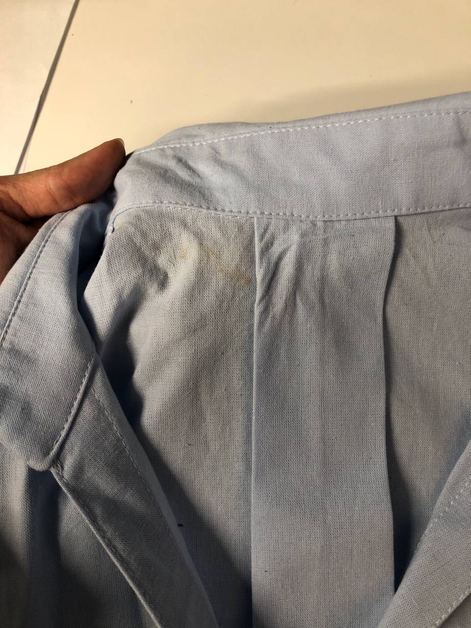 ایراد محصول آبی: خط های سفید جلوی لباس- لک قسمتهای مختلف- پرز جزئی