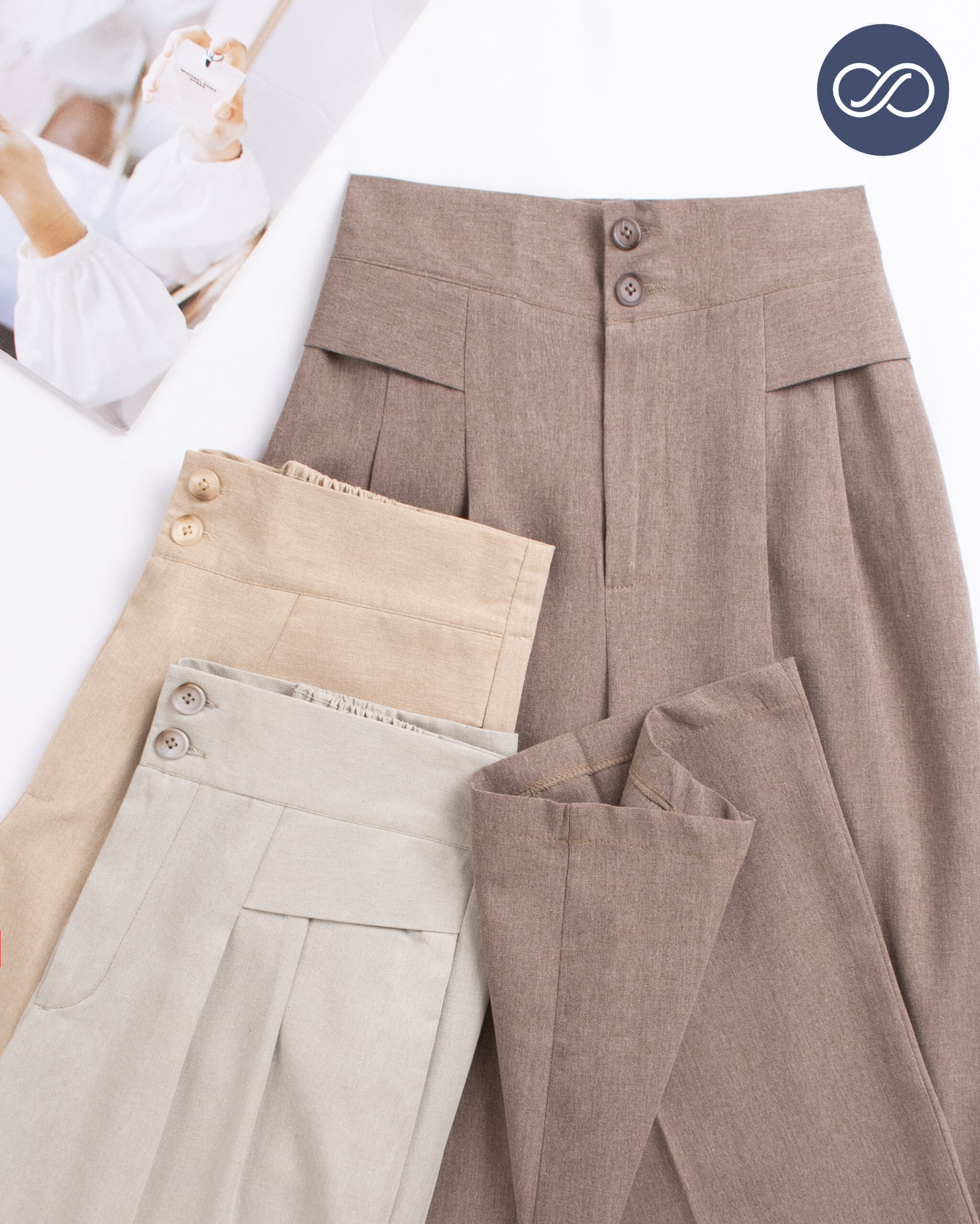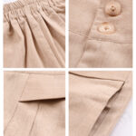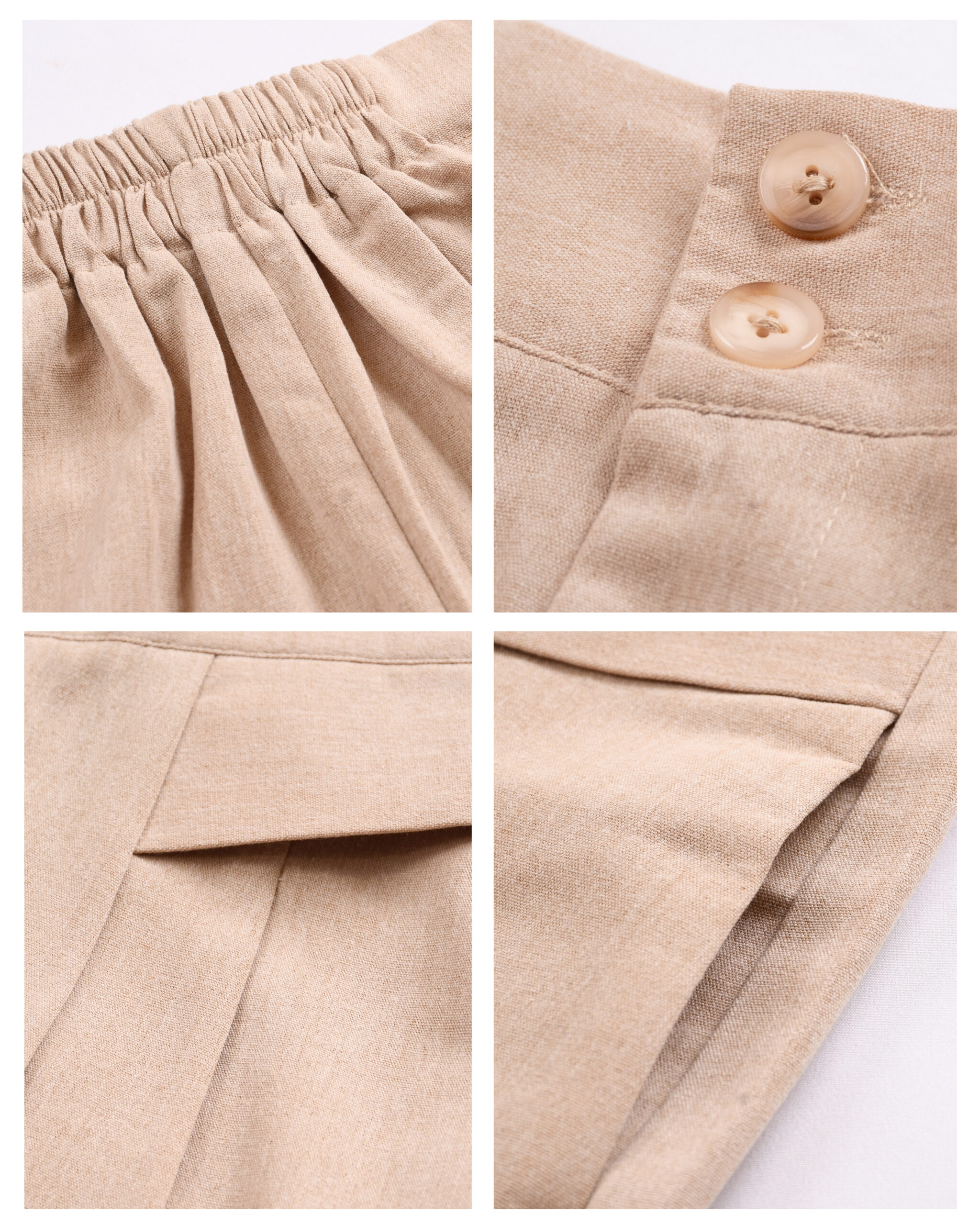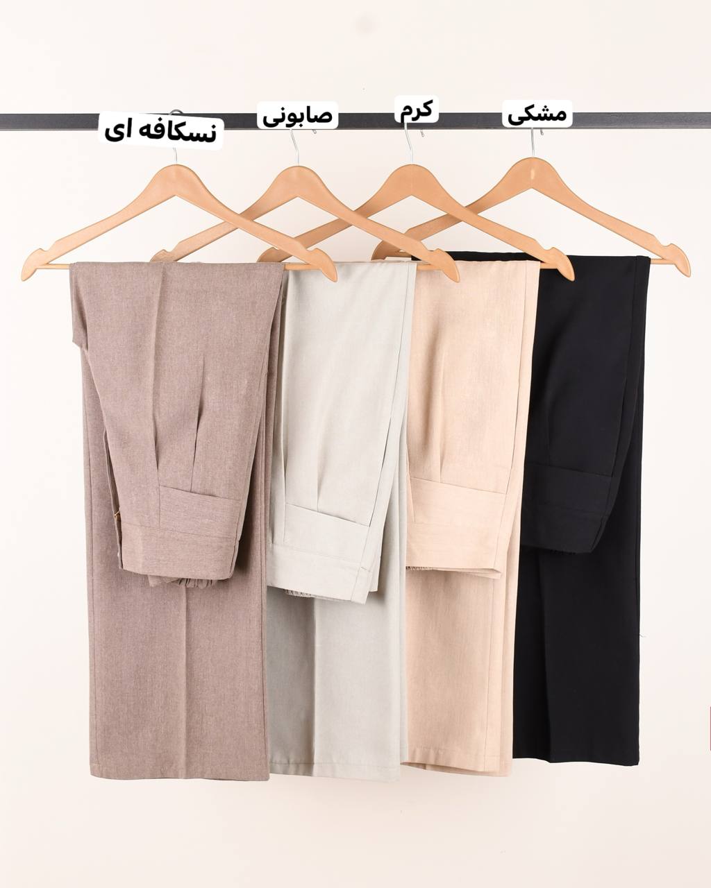 راهنمای اندازه و کش پشت شلوار در رنگ کرم و صابونی با دو رنگ دیگر متفاوت است.