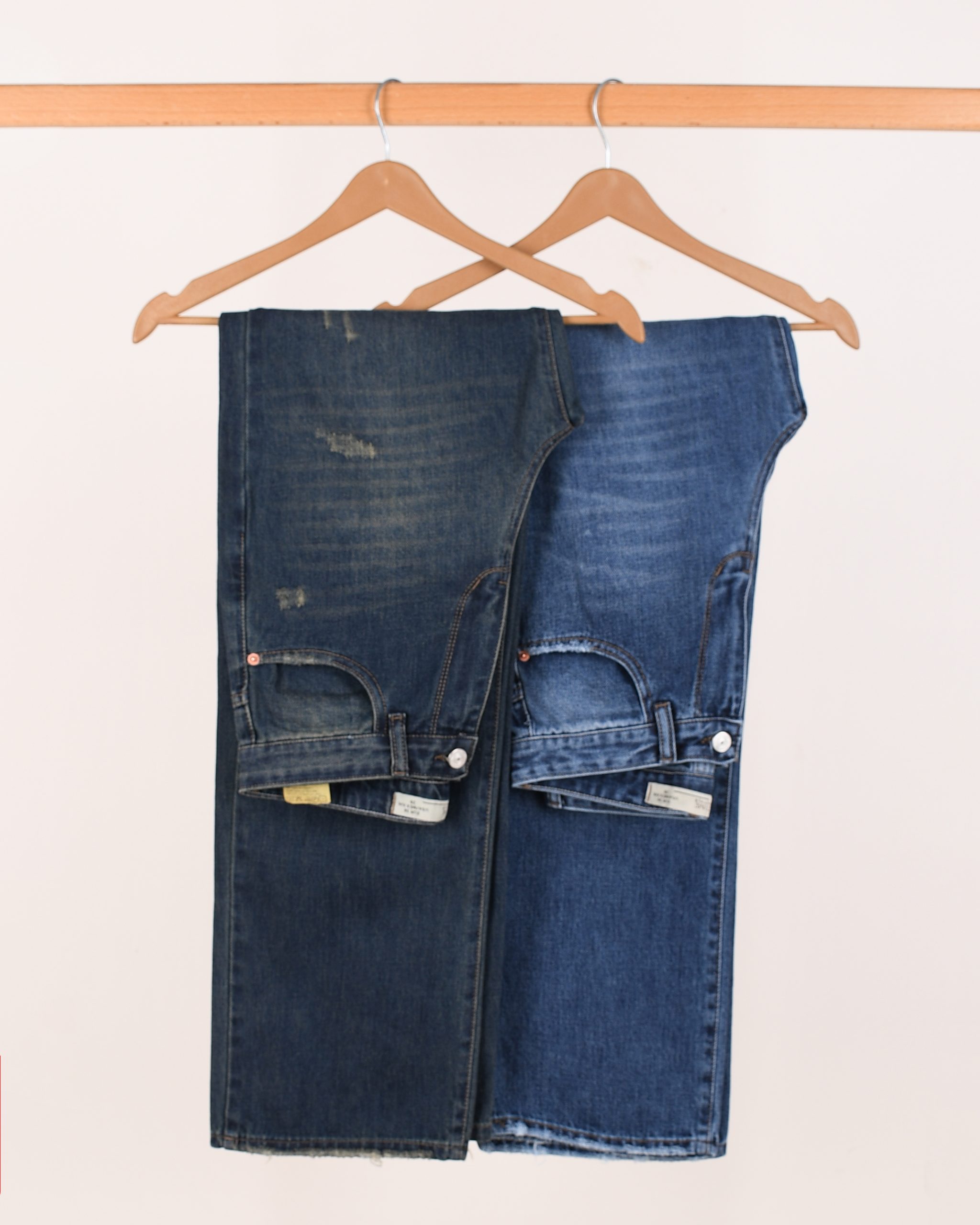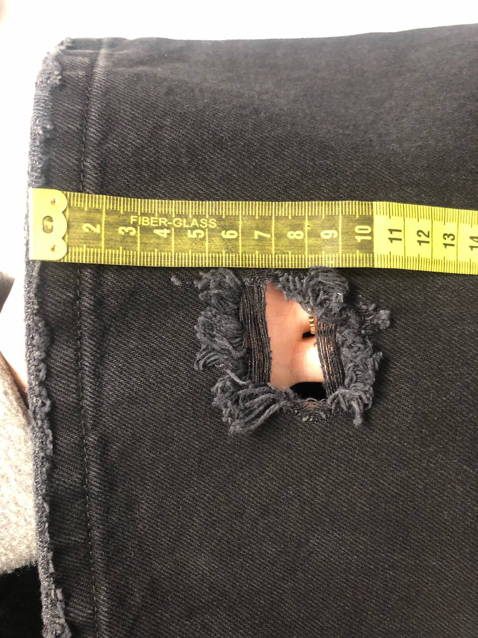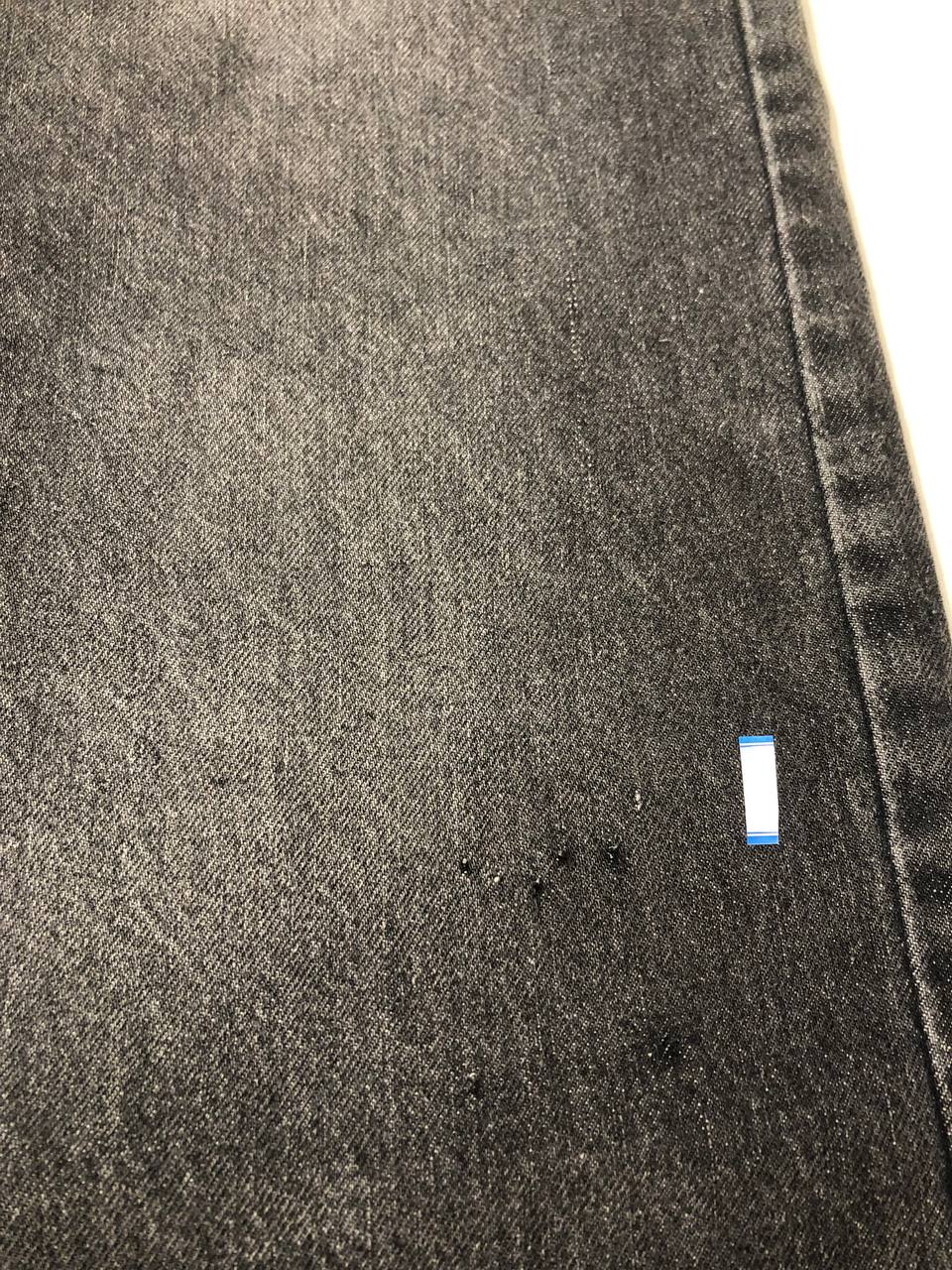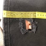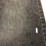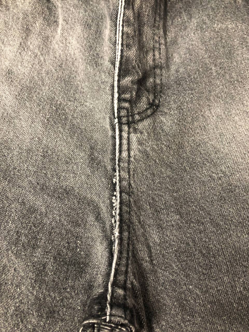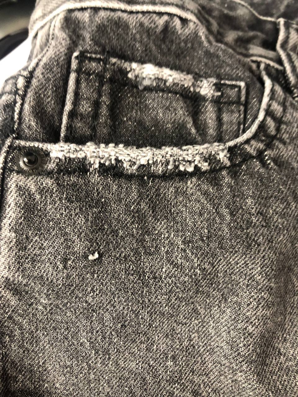 ایراد محصول کد4 سایز33: ریش ریش قسمت زیپ- زدگی جزئی کنار جیب و روی ران