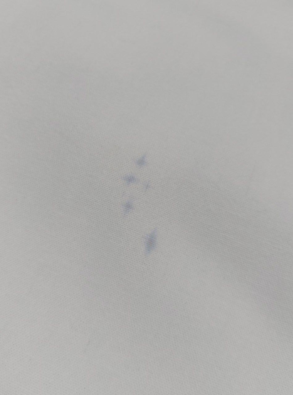 ایراد محصول سفید سایز2: لک های جوهر پشت شلوار