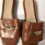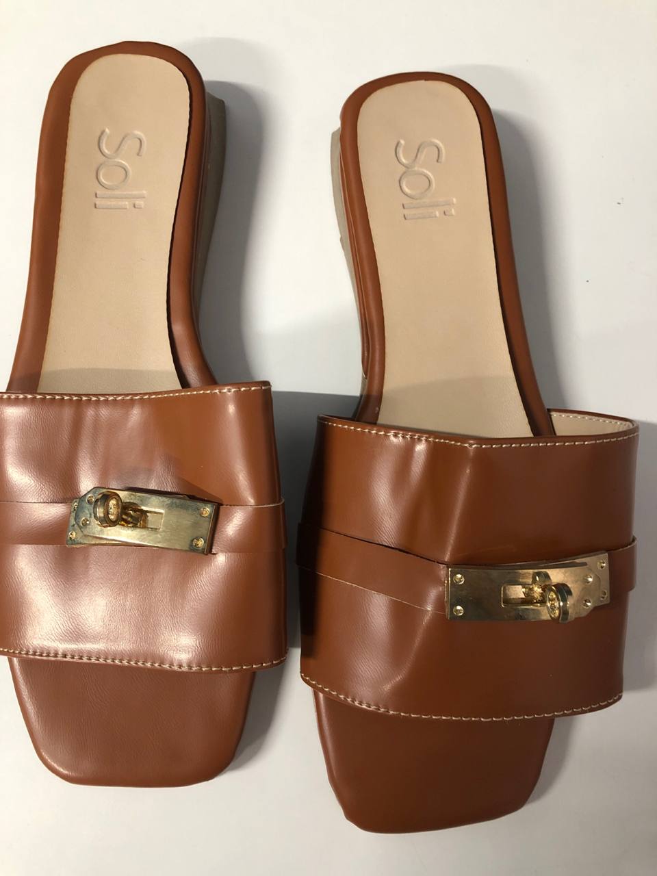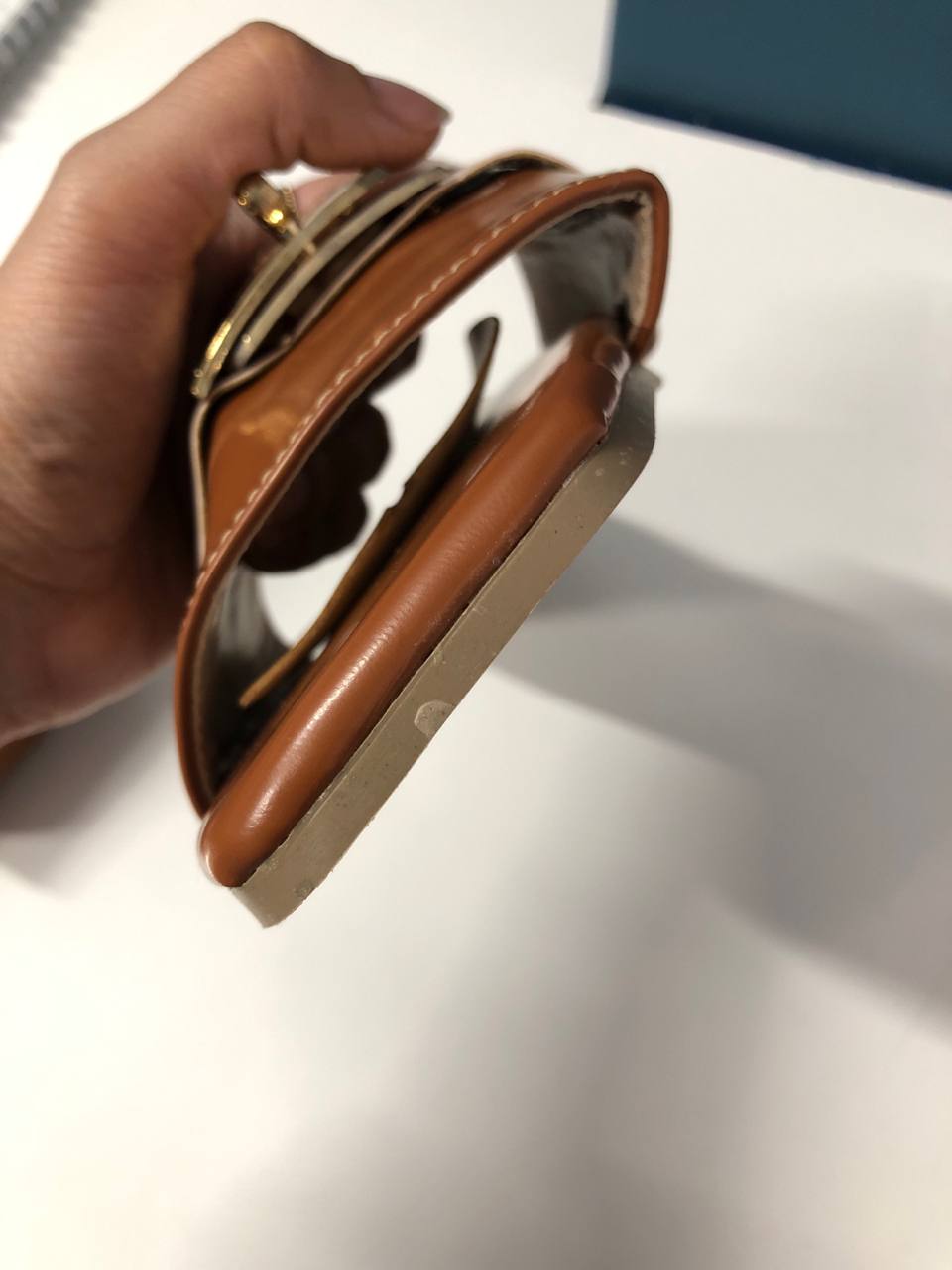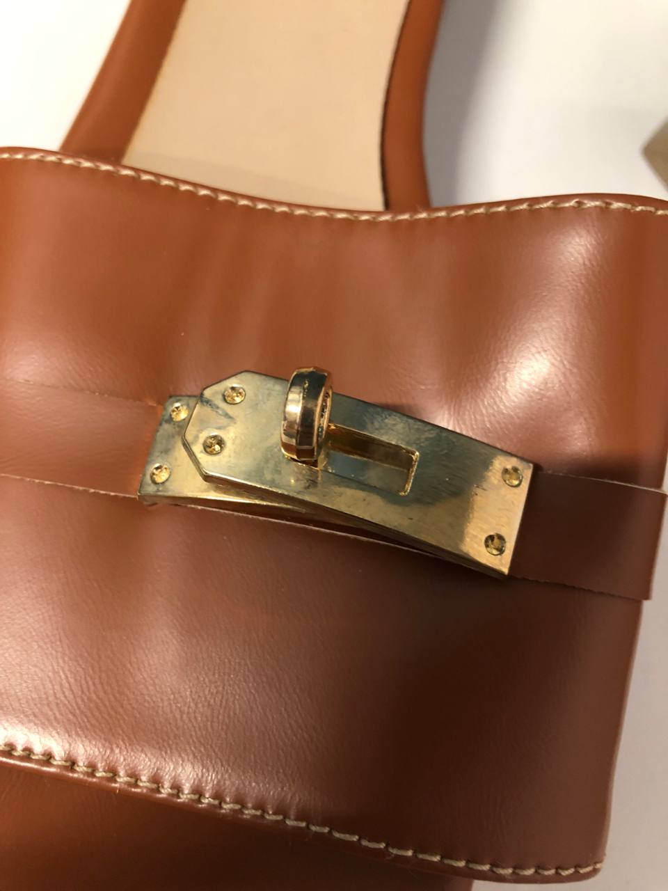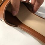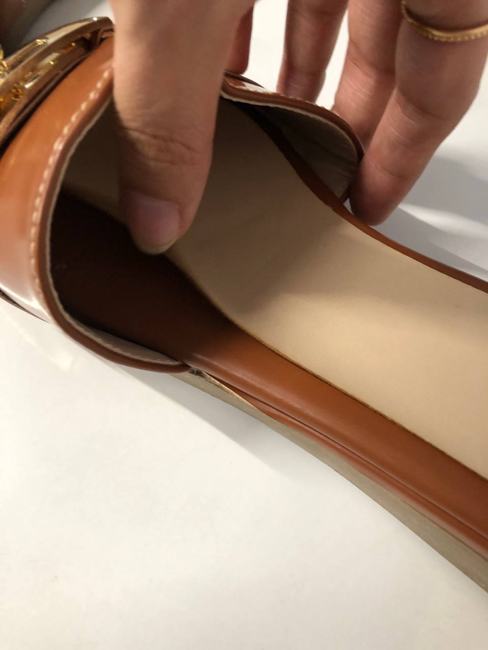 ایراد عسلی 40: تاخوردگی جلوی صندل- چسب کفی باز شده- لک و کدی سگک ها
