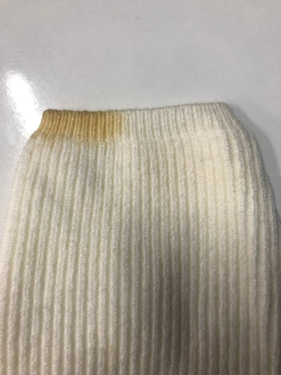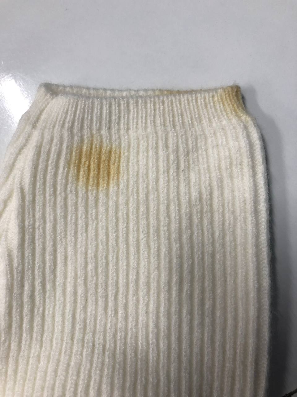 ایراد محصول: لک کمرنگ در قسمت های مختلف- لک زرد روی آستین ها- نخ کش جزئی