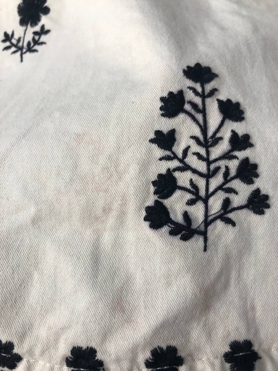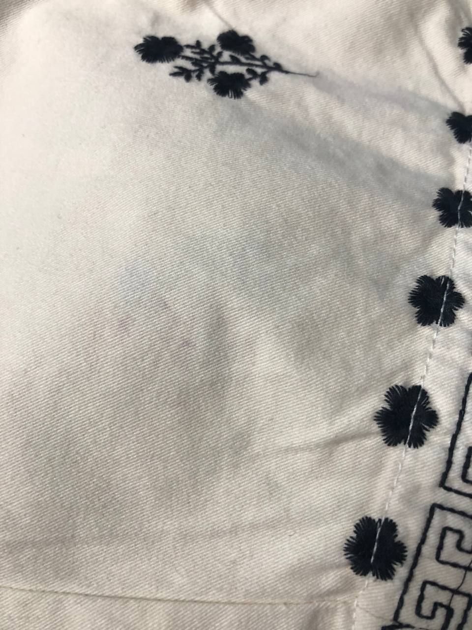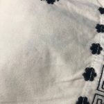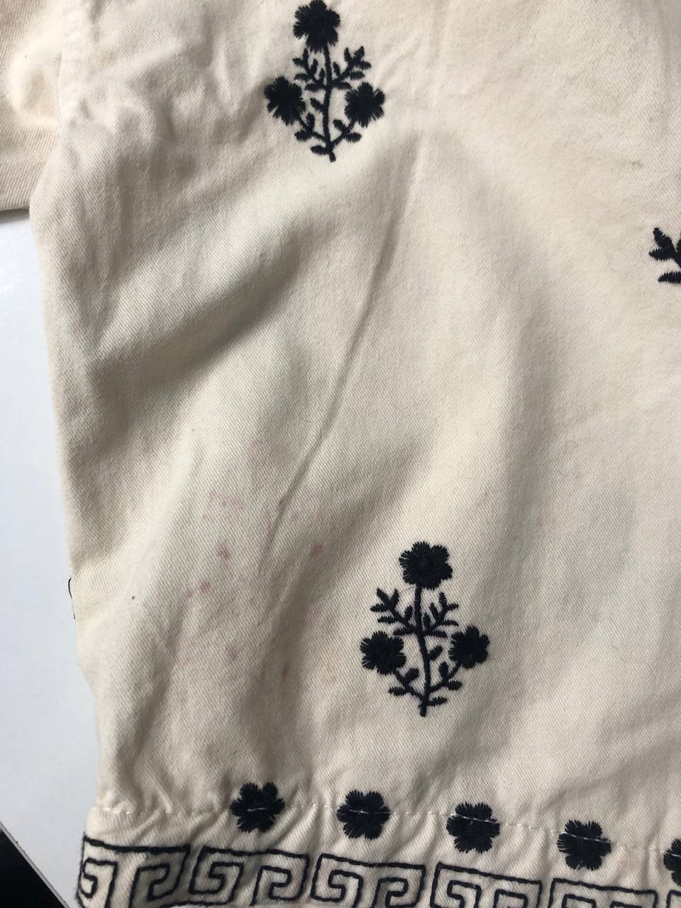 رنگ کرم و سفید قسمت های مختصری از لباس به صورت رندوم هاله ی صورتی دارد که خیلی قابل مشاهده نیست.