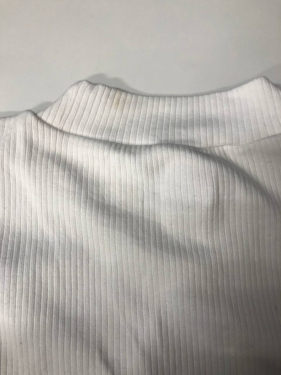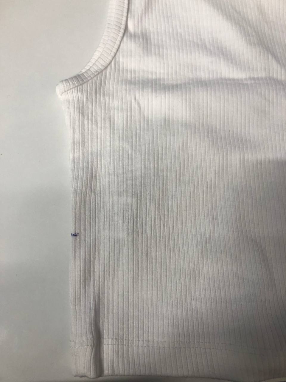 ایراد محصول سفید M: دارای لک پشت یقه- لک خودکار کنار درز بغل لباس
