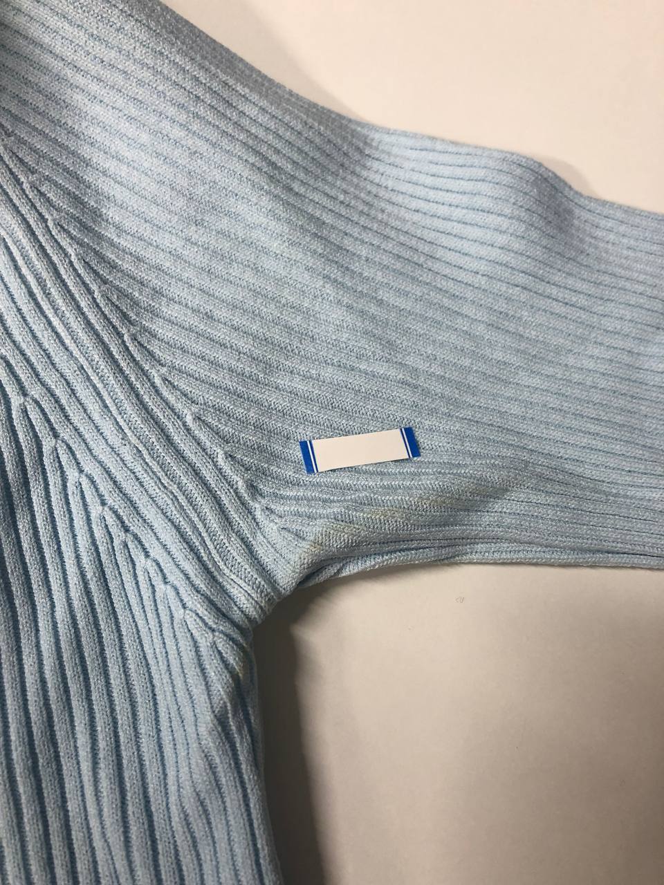 ایراد محصول آبی: دارای لک زرد قسمت زیربغل لباس و آستین