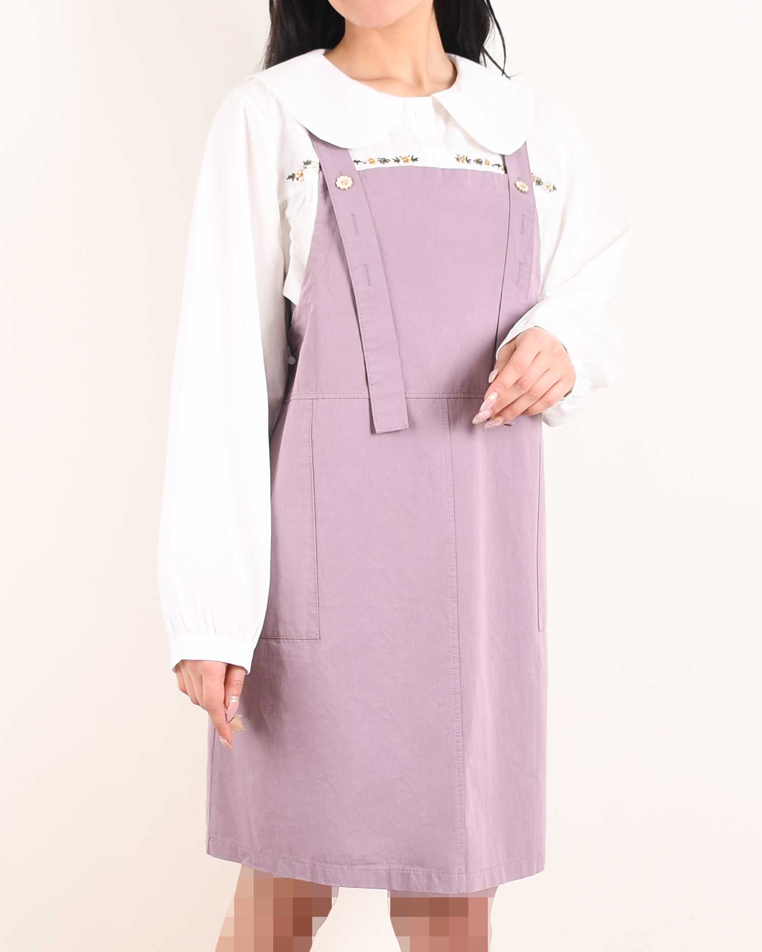 شومیز جلو گلدوزی و دکمه دارد.