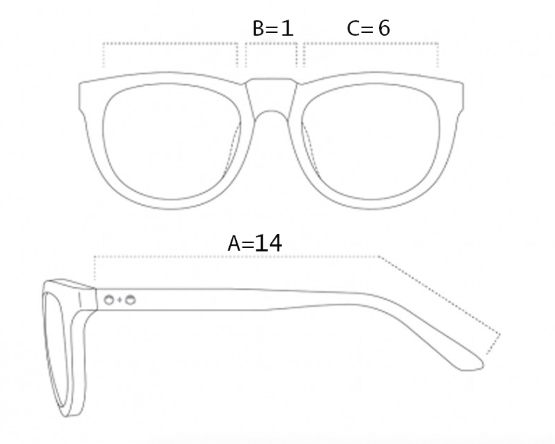 | SIZE | اندازه دسته | اندازه پل | اندازه چشمی |