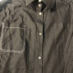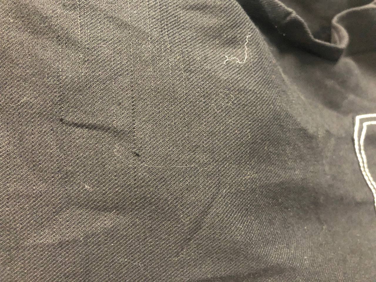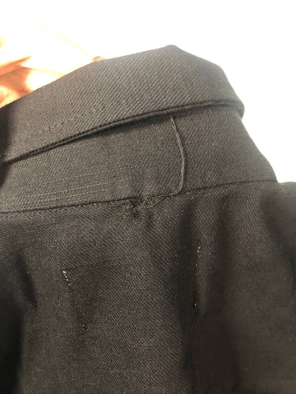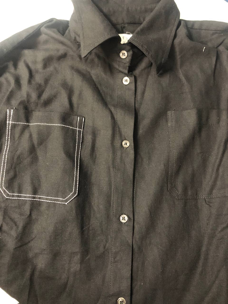 ایراد محصول مشکی: نخ کش جزئی جلوی لباس- پشت یقه رفو شده- دوخت یک جیب با نخ سفید