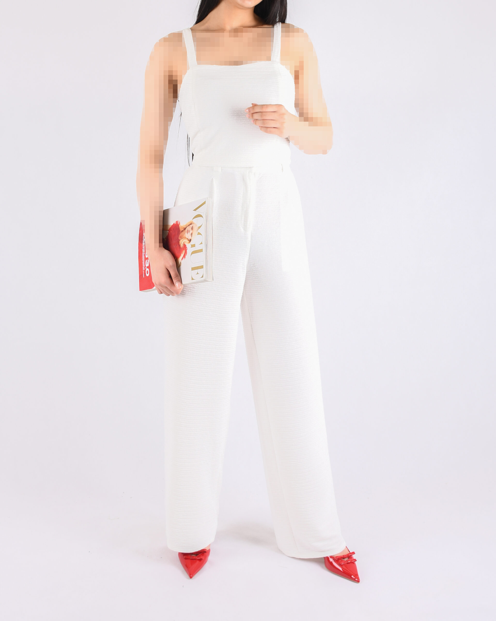 | SIZE | دور سینه عادی | دور سینه کشسانی | قد کراپ از روی سینه | دور کمر عادی | دور کمر کشسانی | دور ران | دور باسن | فاق | قد شلوار |