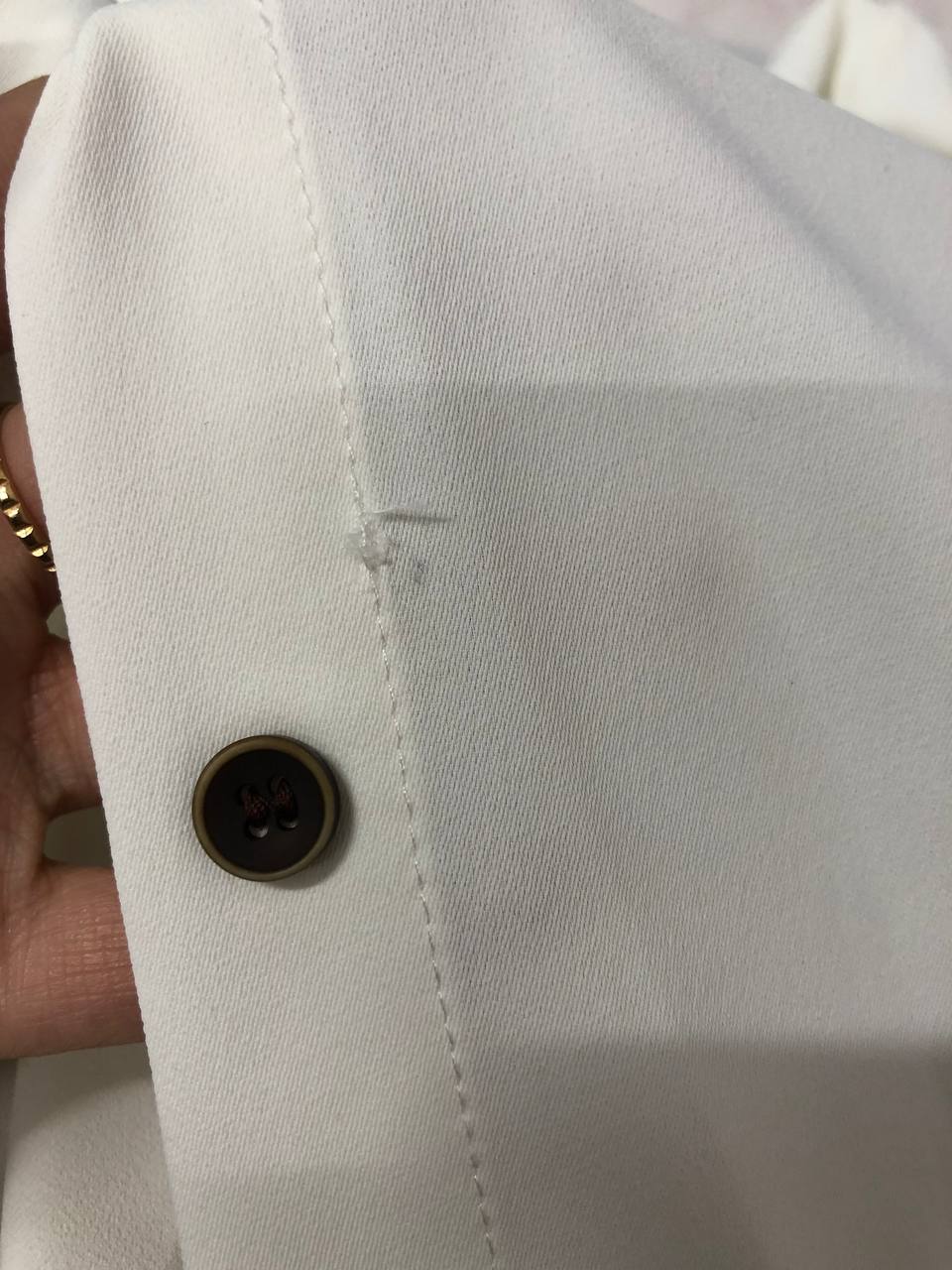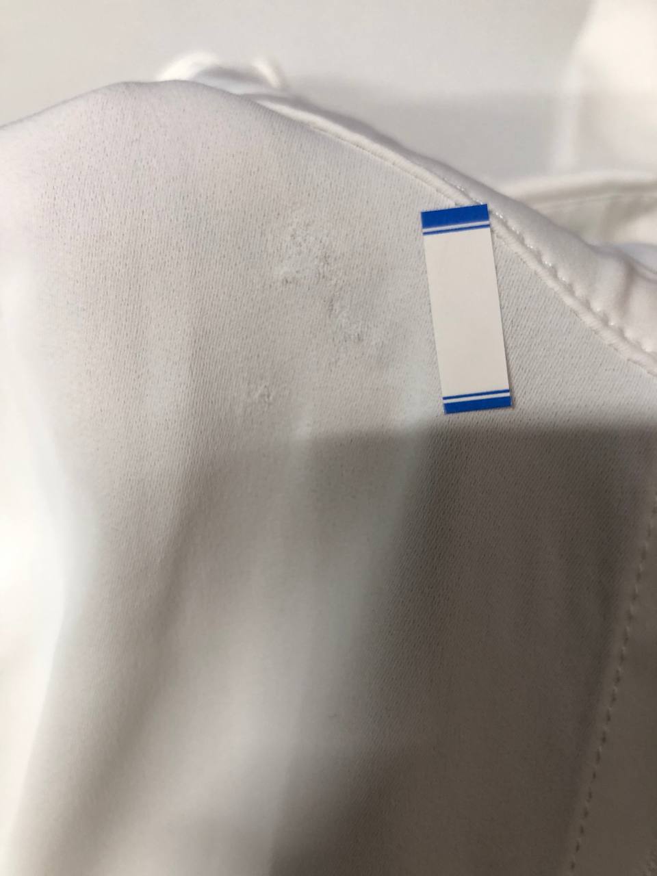 ایراد محصول سفید XL: زدگی قسمت زیر یقه- لک و نخ کش جزئی قسمت جادکمه