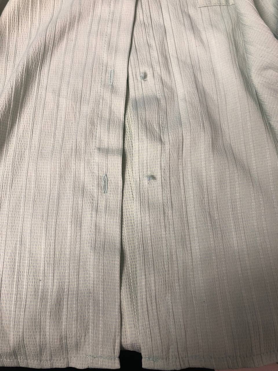 ایراد محصول صابونی1: 2 دکمه ندارد- دارای لک های پراکنده
