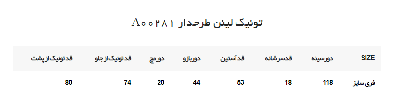 | فری سایز | 118 | 18 | 53 | 44 | 20 | 74 | 80 |