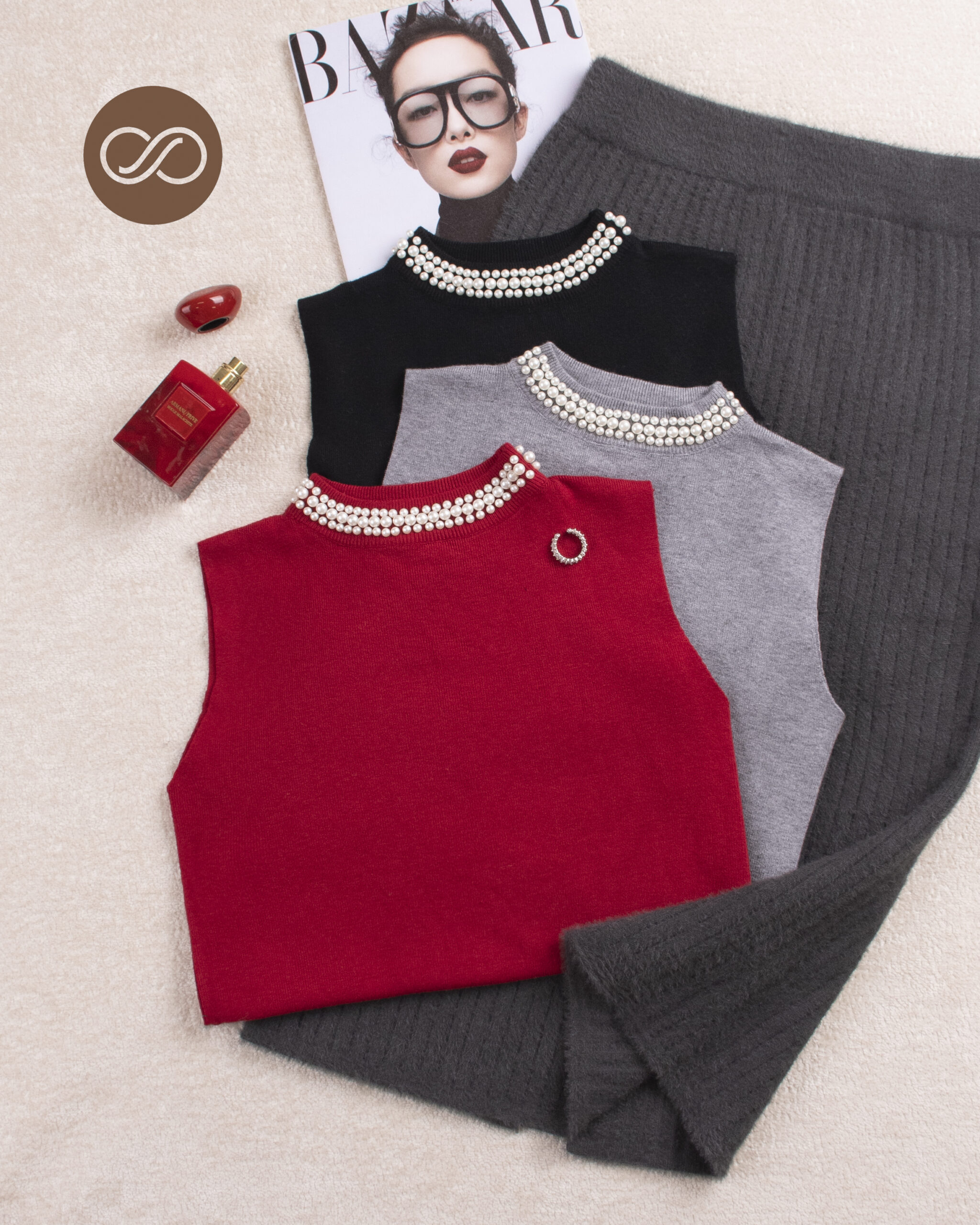 تاپ یقه مرواریدی L0099