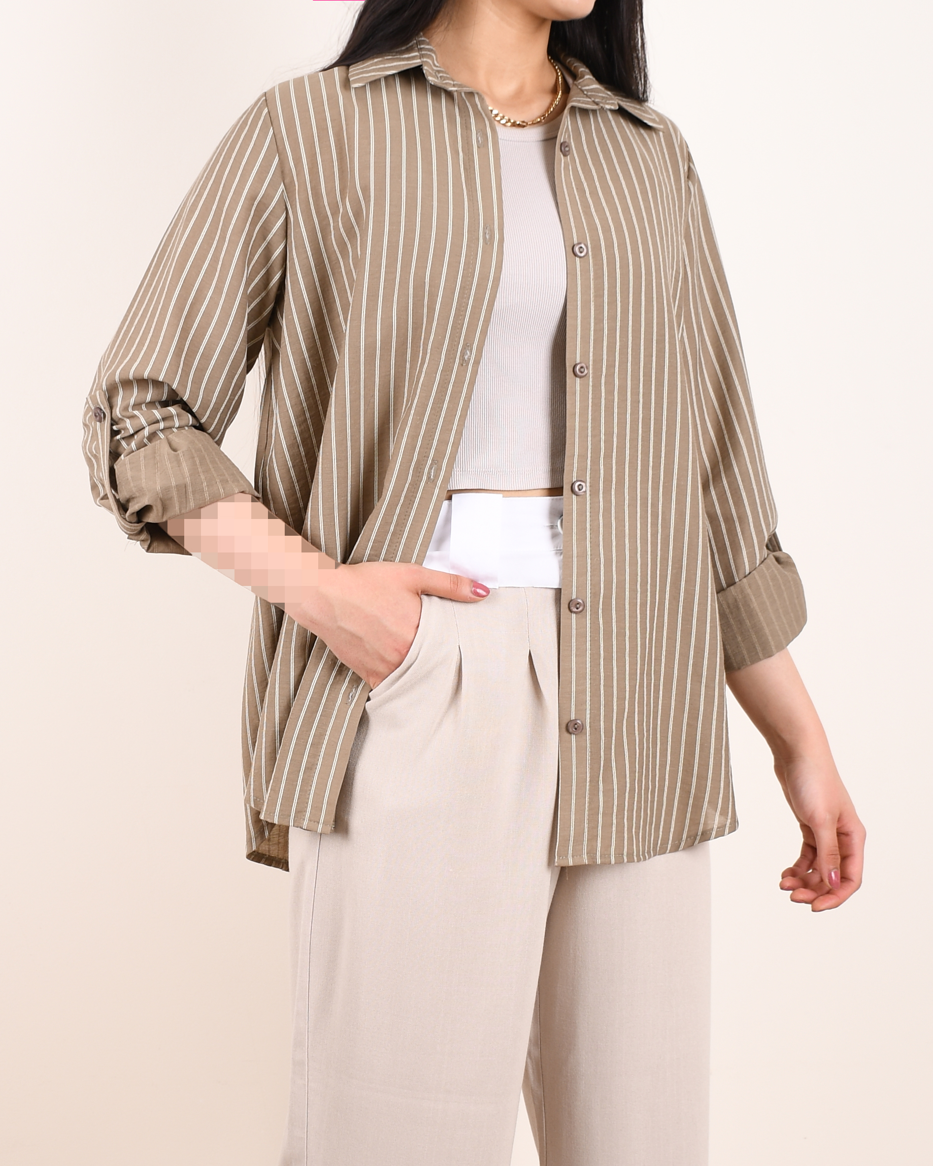در بافت پارچه رگه های قهوه ای وجود دارد