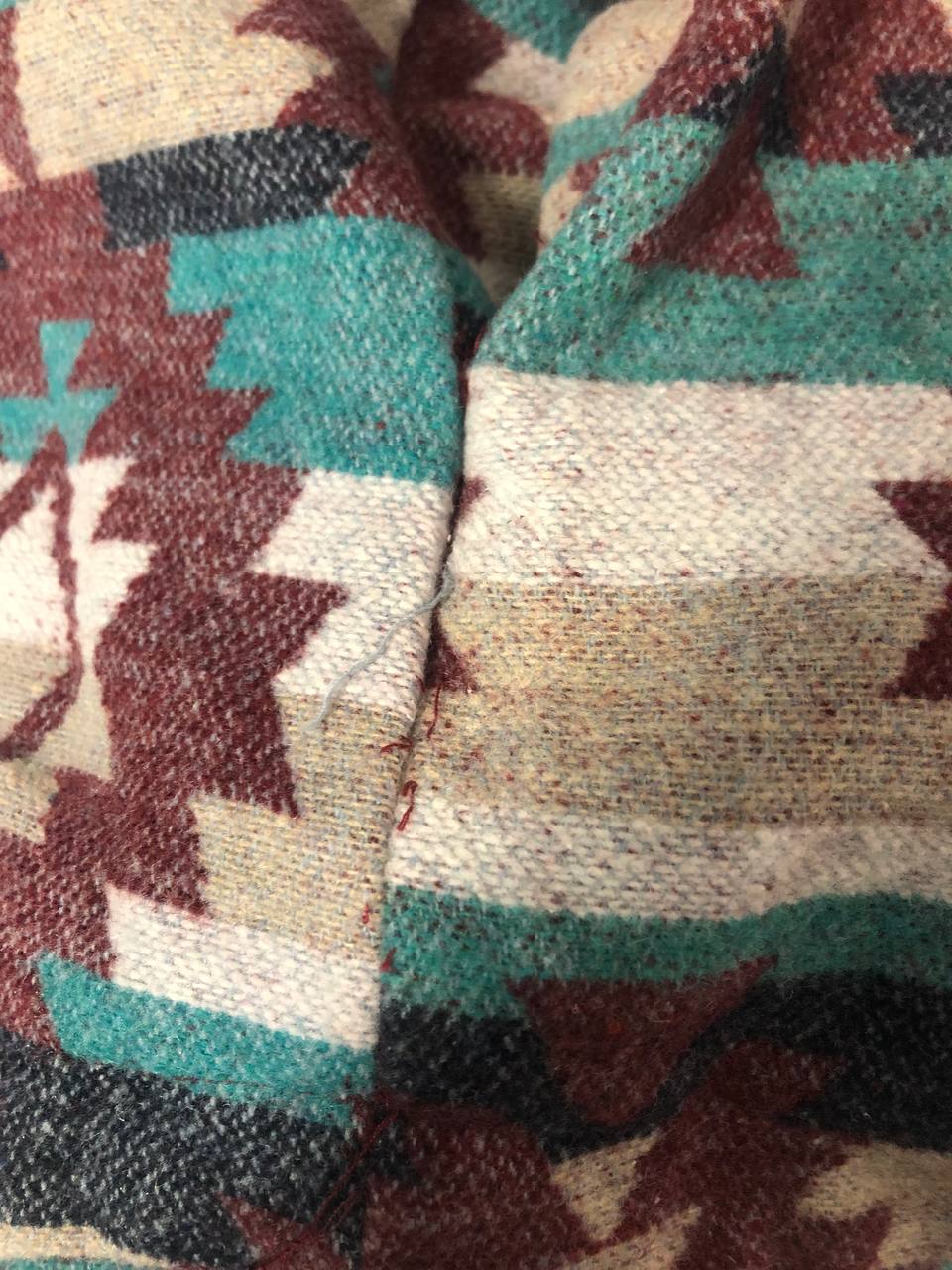 ایراد محصول زرشکی M/L: دوخت نامنظم و نخ های اضافه