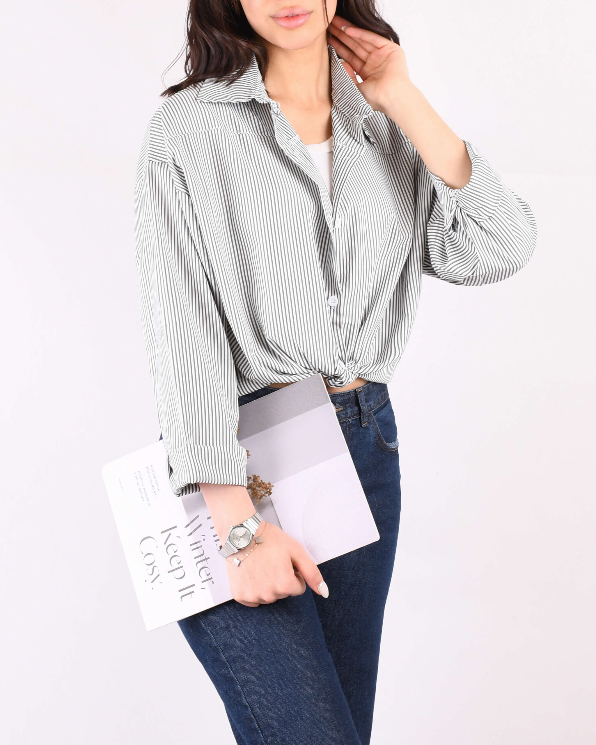 شومیز راه راه پشت دکمه دار G0092